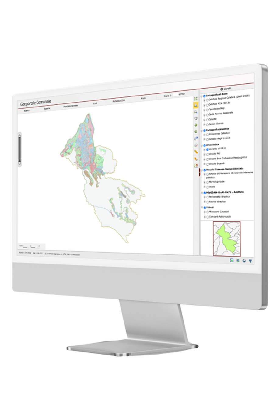 è uno strumento innovativo di tipo WebGIS concepito per integrare, visualizzare e interrogare l’insieme dei dati territoriali e cartografici relativi al territorio comunale.